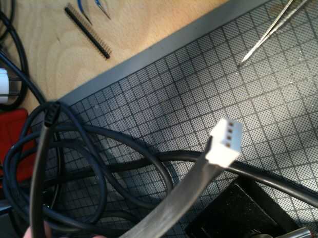 cables, con el revestimiento de arduino como arriba, es GND, 5V, Pin 0, A3, A4, A5. En el tablero con los potenciómetros es inversamente si señalan a usted. Usé dos trozos de manguera retráctil aquí para cubrir los cables lo mejor posibles.