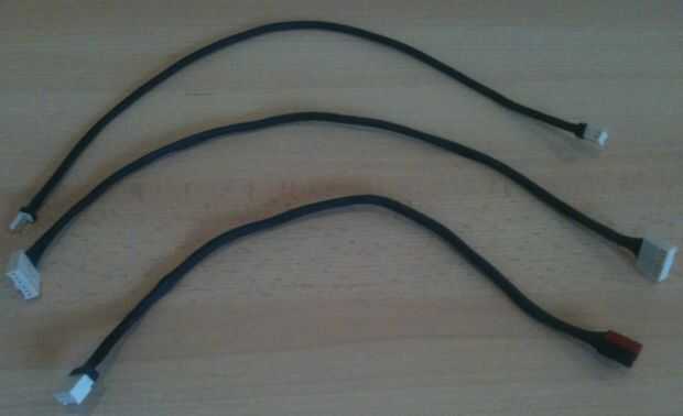 Usted podría hacer sus propios cables para evitar que se enrede el cable. Utilizar cables normales con la longitud deseada para cada uno de ellos. El cable para la segunda fuente de alimentación, que se utiliza exclusivamente para el grupo de "nivel de ruido" de LEDs, consta de 2 cables, las partes correspondientes de las conexiones de enchufe (PSK 254/W2) y tubo del encogimiento.