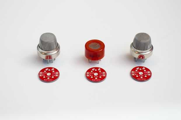 1. tableros de arranque de sensor de gas para sensores de gas de la soldadura. No importa la orientación, asegúrese de que la serigrafía (también conocido como etiquetas) están hacia abajo para que usted puede leerlos (tuvo que aprender que la manera más dura...). Soldar los cables a la Junta de arranque sensor de gas.