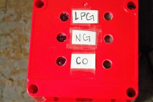5. etiquetar los LED con su correspondiente sensor de gas en el exterior de la caja.
