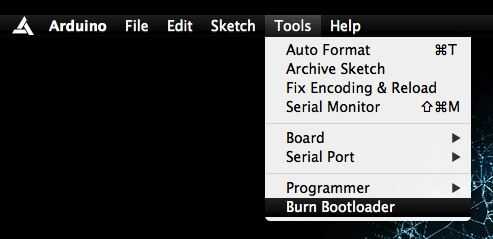 Los elementos de este menú permiten grabar un bootloader en el microcontrolador en una placa de Arduino. Esto no es necesario para el uso normal de una placa de Arduino pero es útil si usted compra un nuevo microcontrolador ATmega (que normalmente vienen sin un gestor de arranque). Asegúrese de que ha seleccionado el directorio correcto en el menú de tablas antes de quemar el bootloader... Cuando subes un dibujo, utiliza el bootloader de Arduino, un pequeño programa que se ha cargado en el microcontrolador en su tabla. Permite cargar código sin necesidad de utilizar ningún hardware adicional. El bootloader es activo durante unos segundos cuando se restablece el Consejo; empieza entonces cualquier bosquejo fue subido recientemente al microcontrolador. El gestor de arranque parpadea a bordo (pin 13) cuando se inicia (es decir, cuando la Junta se reinicia).