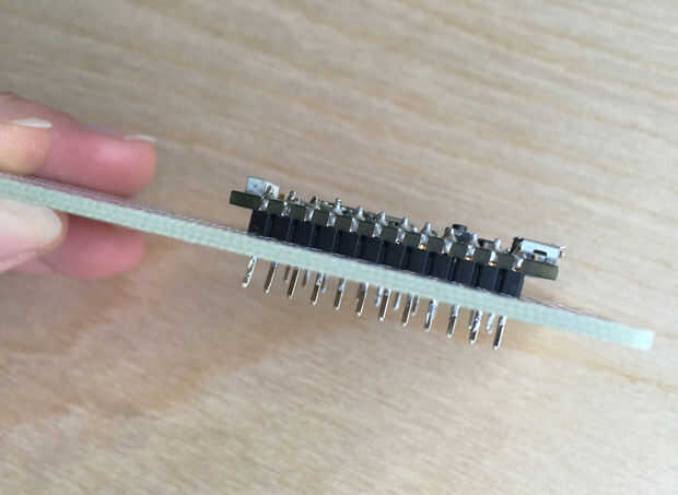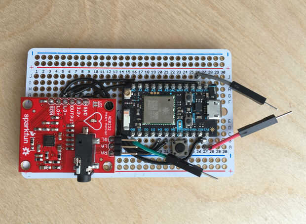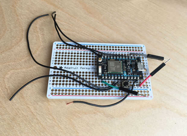 Si todo funciona, puede soldar los componentes sobre un tablero perma-proto. Empecé con el fotón, seguido los cables por el monitor de ritmo cardíaco al final. En vez de soldar los tres alambres LED permanentemente sobre el tablero, usé tres cables de puente macho (datos, VCC y GND) para conectar con los cables de LED.