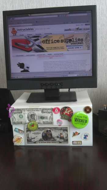 Opcional: después de elegir la altura deseada, usted puede cubrir los libros con un pedazo de cartulina o papel de escribir (usando unos trozos de cinta adhesiva para mantenerlo en su lugar). Y, si lo desea, puede decorar con botín seleccionado para que cuando usted ha estado buscando en el monitor tanto tiempo, para evitar la fatiga visual, se puede admirar su botín. Tu cuerpo te va a querer!