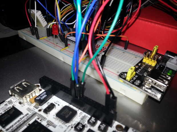 He incluido un nuevo Fritzing para mostrar las líneas I2C. Lamentablemente no salvó un simple conjunto de programas de pruebas de i2c. Si alguien tiene problemas para conseguir que funcione puedo hacer uno.