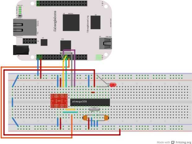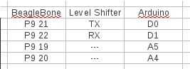 alambre BeagleBone y Arduino i2c juntos. Desplazador del nivel no es necesario, la subida de la BeagleBone es lo suficientemente fuerte como para manejar la corriente baja.