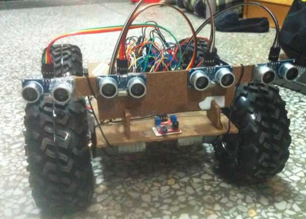 Principal: Arduino mega2560; 4wheel coche; cuatro motores con engranaje de reducción; Placa de circuito controlador L298N; módulos de RF APC-220 (comunicación RF); cuatro sensores de distancia por ultrasonidos; sensor de distancia de rayos infrarrojos; batería li-3S(11.1V); sensor de calidad de aire (yo usé GP2Y1010 aguda); LCD DE 1602; Módulo de tarjeta SD