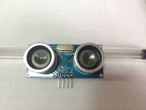 Hacer un soporte para la fijación de cuatro sensores de distancia por ultrasonidos y coloque en el soporte. Es el ancho de lado a lado