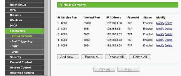 La clave es configurar el reenvío de puertos para que usted puede "pasar" el router a los distintos dispositivos conectados es decir Ethernet convertidor RS485 y cámaras. Se puede ver que hemos permitido para dispositivos adicionales.
