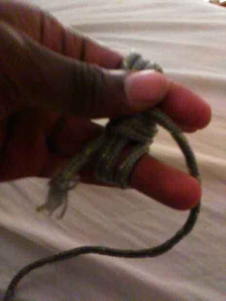 Lugar el rodamiento de bolitas en medio el paquete a continuación enrolle alrededor de sólo el dedo del anillo a donde está sobre los paquetes. Por último enrolle el cable alrededor del cojinete de bolas.