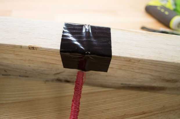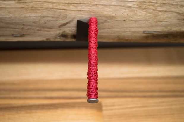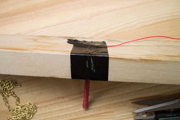 La siguiente cosa a hacer es clavar nuestro electroimán en otra junta (una vez más, algo alrededor de 1 x 4 o 2 x 4 aproximadamente 1-2 pies de longitud). El electroimán del clavo en el centro. Corte otro 20 pies o tan (o tanto como usted quiere ser capaz de disparar su arma de) los extremos de la tira de su cable del timbre 20/2 y conectar a los extremos de su electroimán. Cinta hasta los extremos (o para una conexión más fuerte, soldarlos) y luego con cinta adhesiva a la Junta.