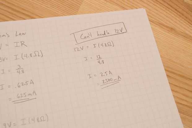 En 12V y 4.8Ω, el amperaje viene a 12V / 2.5A = 4.8Ω = 2500mA. En este caso, mi adaptador de DC sobrecalentamiento o posiblemente incluso coger el fuego, como a 12V está preparada para manejar sólo 2000mA.