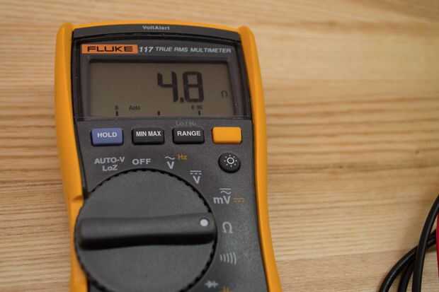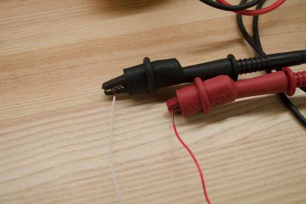 Una de las leyes más básicas en electricidad es la ley de Ohm, que se reduce a la ecuación, V = I x R donde V = voltaje, I = amperaje y R = resistencia. Vamos a usar esta ecuación para averiguar si un determinado adaptador de DC funcionará para nuestro caso. El primer paso es averiguar la resistencia de nuestro circuito. Haremos al medir con un multímetro. Establezca su multímetro en Ω, el símbolo ohmios, una unidad de resistencia. Conecte los cables del multímetro a los cables de su electroimán. El número que Lee es la resistencia, R, que va en la ecuación anterior. Usando ese valor, podemos ahora conectar la tensión en el adaptador de CC y ver si el amperaje requerido por el circuito supera el máximo amperaje del adaptador. Si lo hace, no podemos usar ese adaptador. El adaptador que elegí tiene un número de diferentes calificaciones. Se puede establecer a 3, 4, 6, 7.5, 9 o 12 voltios y está valorada en 2500mA de 7,5 voltios y por debajo y 2000mA en 9 voltios y arriba. Así que vamos a conectar en algunos números.
