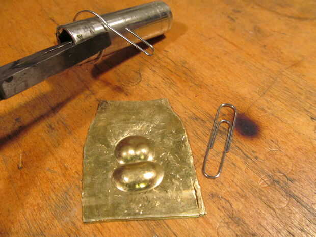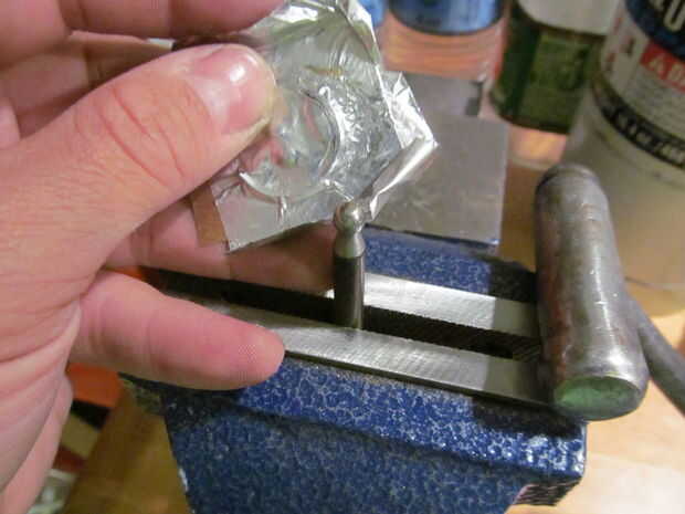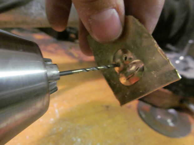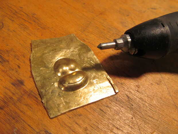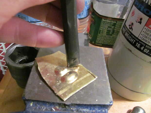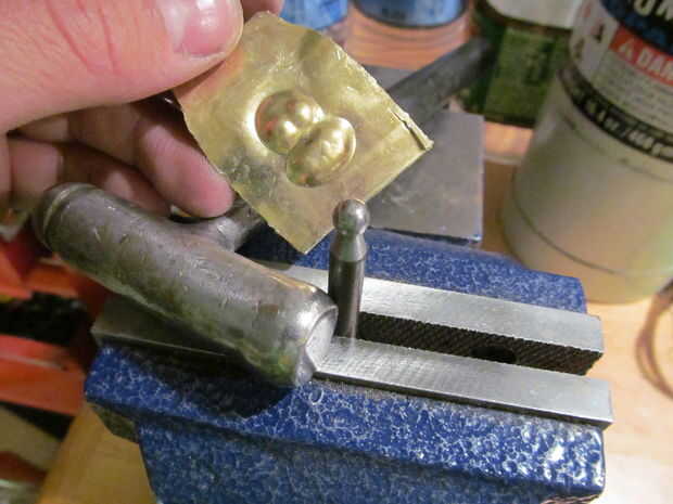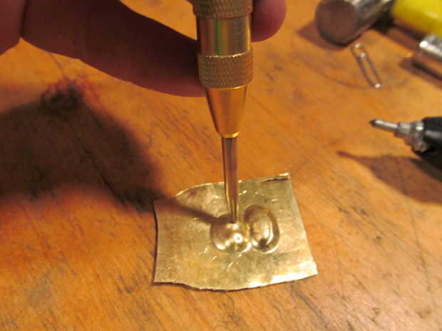 Para los ojos, utilice un punzón para marcar los puntos para una broca de taladro. Después de que usted perfore los ojos uso un martillo pequeño se les aplanen un poco.
