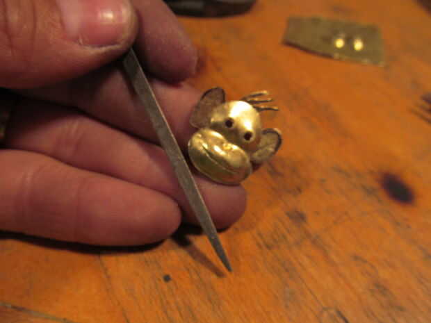 Marque los orificios nasales con un marcador permanente y ponlos con un punzón en el yunque de la bola.