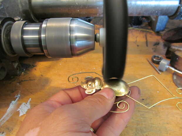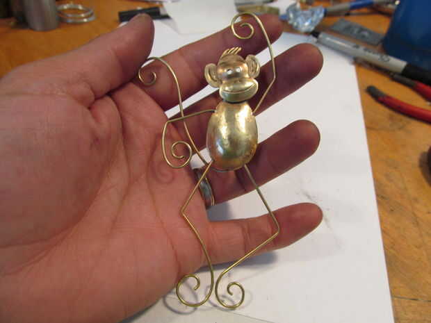 Después de las extremidades y la cabeza se suelda, Polaco el mono con una rueda de pulido.