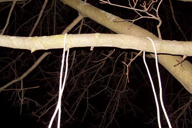 Sin embargo usted decide entrar en el aire, vas a querer algo para encender mientras que usted asegure la cuerda. Acababa de usar un cubo de basura, pero dependiendo de cuán alto es su rama, y cuánto mide su snowmonkey será, puede que necesite algo diferente. Va a ser muy difícil regresar y cambio cuanta colgará después de este punto, así que trate de sus dimensiones finales del cuadro y planificar.