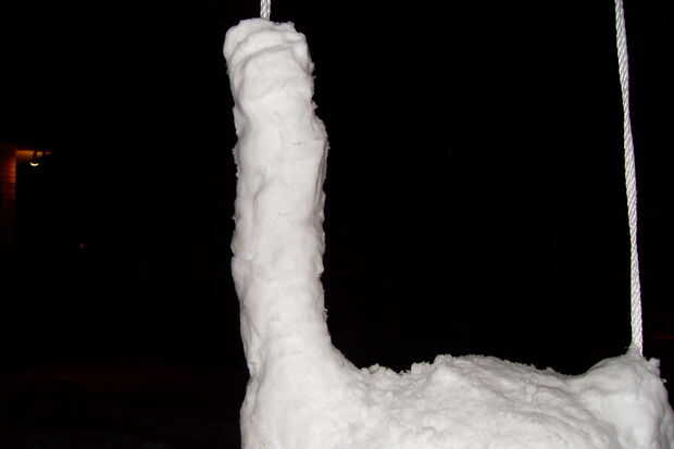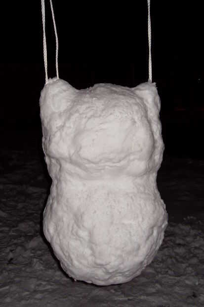Pack algo extra de nieve alrededor de la rama en la parte superior para dar cierta forma a manos de su snowmonkey, y entonces la cuerda debe ser totalmente invisible. Nadie necesita saber que se ha hecho fuera de cualquier cosa menos nieve.