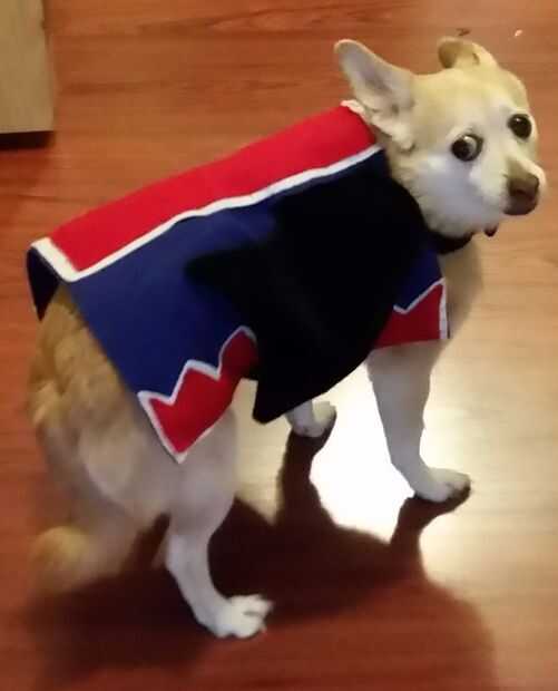 Las hojas de fieltro que Obtén dependerá del tamaño de tu "mono". La nuestra es una raza mezcla de Terrier de Chihuahua, así que un poco más alto y más amplio que un Chihuahua promedio. La hoja de fieltro tiene que poder poner desde el cuello hasta el inicio de las patas traseras. Ya está bien, que usted puede recortar. Más corto se verá apagado. Si su mascota es más largo que las hojas de fieltro, mirar la tela por el patio para encontrar el material adecuado.