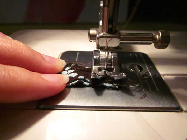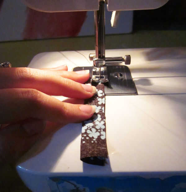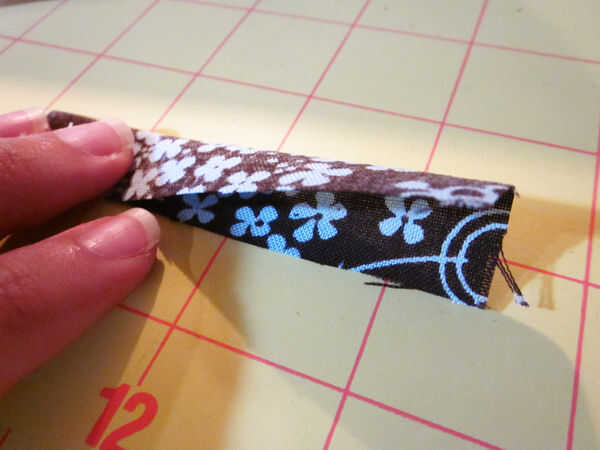 15. en este punto envuelve este pequeño pedazo de tela alrededor del rectángulo más grande (amontonado en el centro para simular la forma de arco acabado) para ver a cuánto tiempo necesito hacer el pedazo de centro. Una vez que haya determinado la longitud adecuada, plegar a la tela en el punto apropiado determinado (lo largo). Asegúrese de que usted doble para que la primera costura que fue cosida en esta pieza está hacia fuera! Coser los bordes juntos.