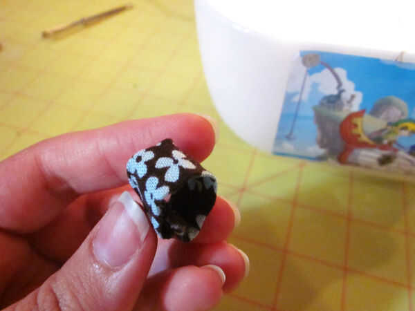 16. Recorte el tejido sobrante y voltear el tubo pequeño revés.