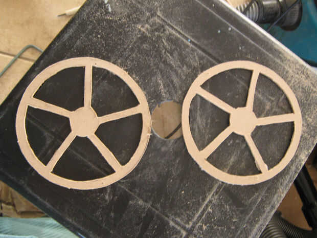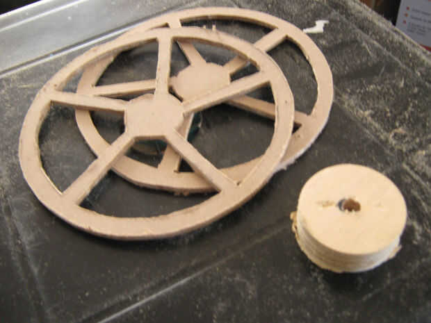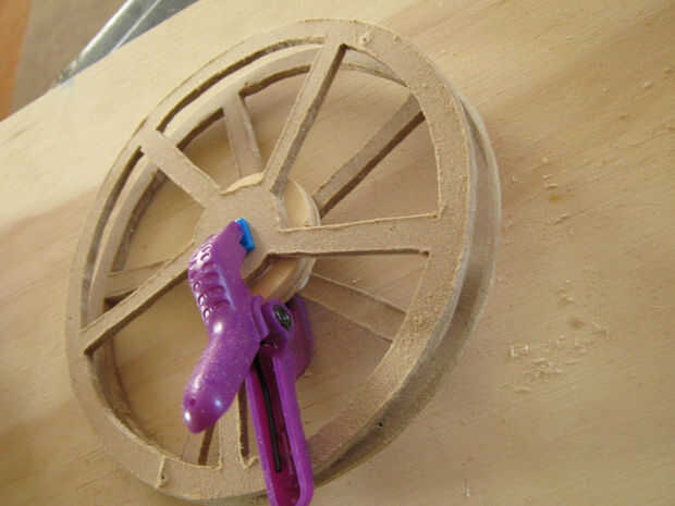 tenía una rueda de madera de un proyecto diferente y corté por la mitad.