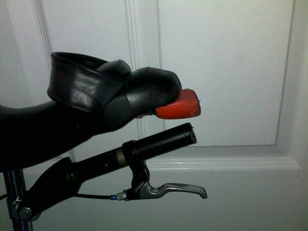 Quería kit de una caja de herramientas de buen tamaño para cargar las herramientas y los proyectos de mi makerspace local. Utilicé una correa accesorio colocada alrededor de mi poste del asiento y la palanca de la caja de herramientas para impedir el