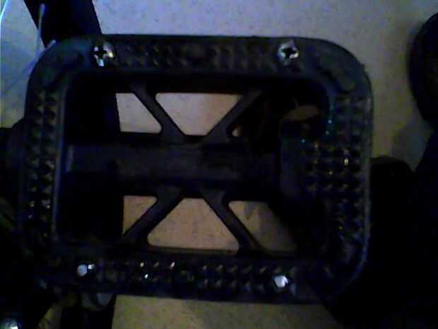 También verá que hay sólo dos tornillos en la parte delantera del pedal (debajo de la bola del pie) - iba a poner tres por fila pero los dos trabajaron tan bien que he decidido dejar las cosas como son.