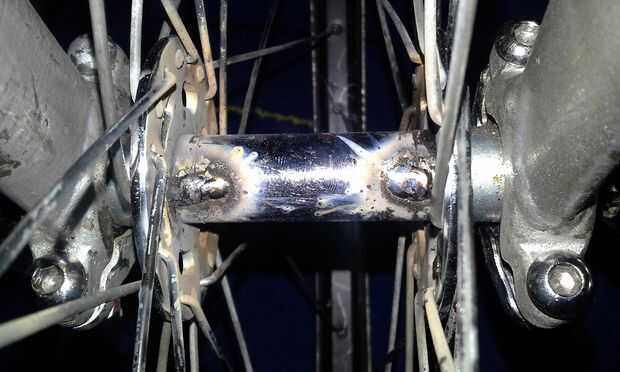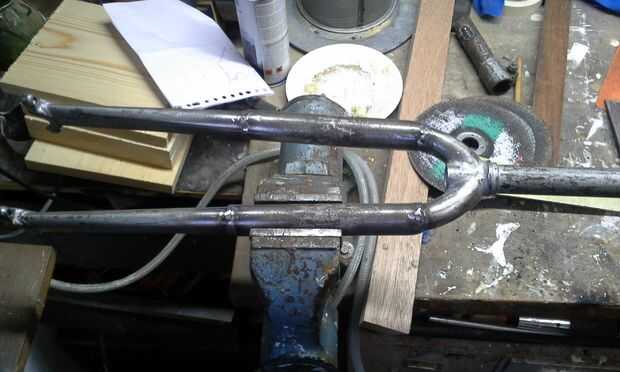 Para el marco se utilizó un marco antiguo de monociclo. El marco necesario para extender para montar la rueda de 28 pulgadas. Para ampliar el marco cortó los brazos, extendió el marco con un tubo de bicicleta y soldando de nuevo.