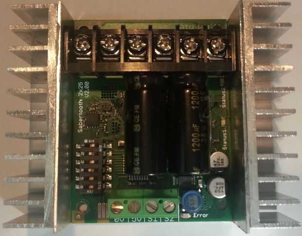 Esto también sería un buen momento para fijar los interruptores DIP en la Sabertooth a los ajustes necesarios para el control de serial.