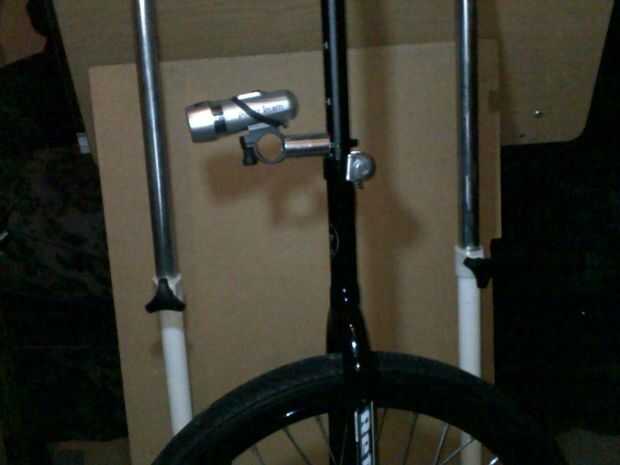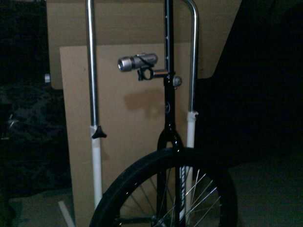 monto un monociclo para la diversión y a veces trato de convencerme de que es incluso práctico. Una cosa que me gustaría hacer es brillar por lo que puedo ver donde estoy montando y detectar protuberancias para evitar UPD (desmonta no planificado). E