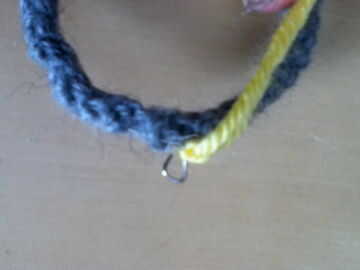 Cuando hayas tejido a través de, alicate tu a hacer un pequeño gancho en un lado del alambre para coger por el otro lado. Doble el extremo más largo para punto 90 grados de su monóculo y hacer un pequeño bucle. Este será el el mango y el lugar para atar la cadena.