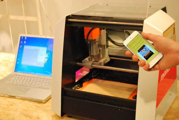 Este un ejemplo de personalización de una fresadora "SRM-20" que se exhibió en el festival internacional de bricolaje, "Maker Faire Tokio 2014", que se celebró en vista grande de Tokio el 23 y 24 de noviembre de 2014.