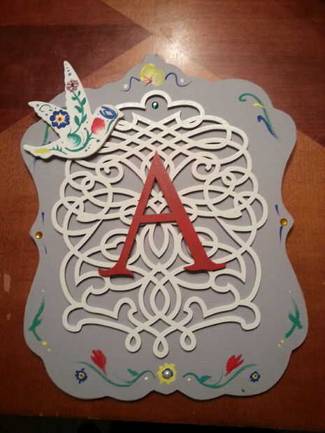 Con algunos recortes de madera de la tienda de artesanía y la pintura un poco puede hacer un monograma uno de la misma clase.