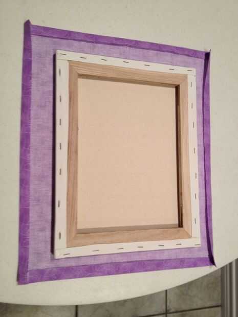 Asegúrese de que su material de hierro. A continuación Alinee su lienzo en la tela, dejando por lo menos 2 pulgadas todo alrededor (para envolver alrededor de los lados). Cortar a la tela. Yo planchar los bordes para asegurarse de que la parte posterior del lienzo parecía limpia.