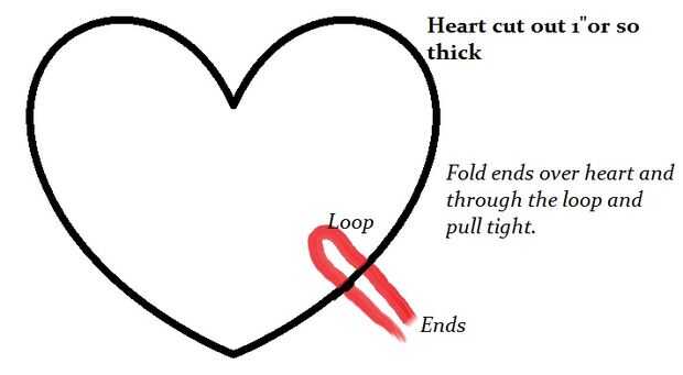 Doble un pedazo de tul en la mitad Coloque el extremo doblado bajo el corazón de afuera hacia adentro, poner los extremos a través del "loop" y tirar. VER IMAGEN
