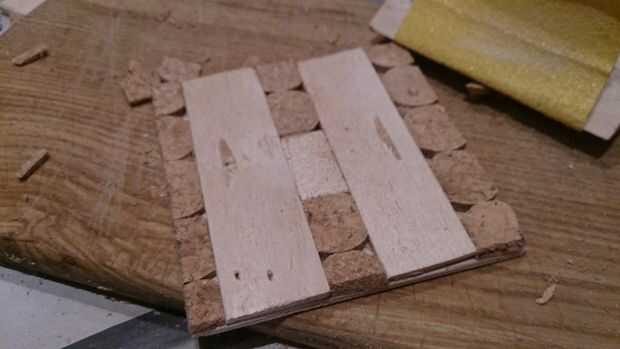 Coloque las formas deseadas de madera en el tablero de corcho y trace una línea alrededor de ellos.