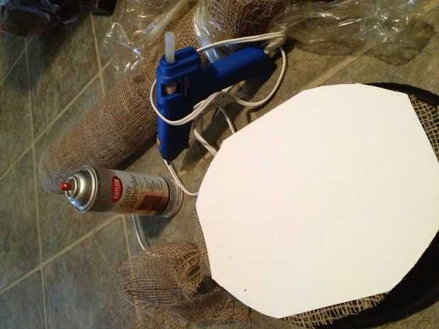 Luego decidí utilizar la arpillera en la parte trasera pero la arpillera era demasiado débil, así que tomó un trozo de cartulina y había utilizado adhesivo en aerosol Krylon a la cartulina y luego poner la arpillera y les pegan.