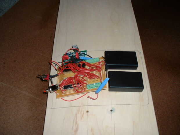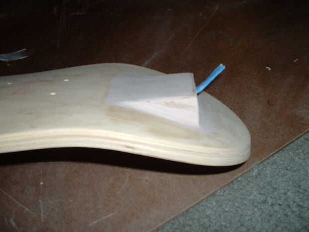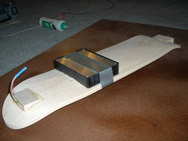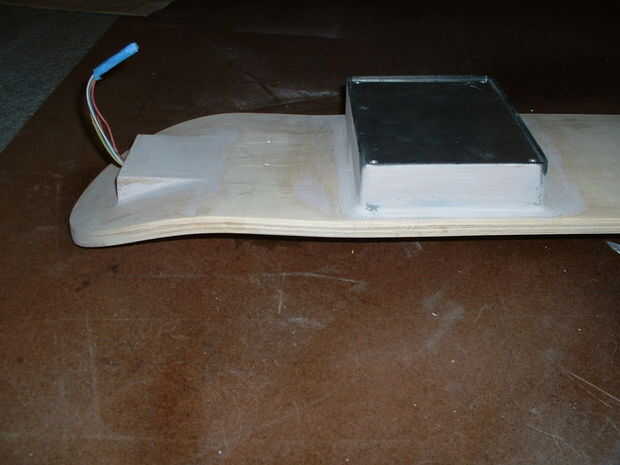 Las carcasas de los LEDs son talladas de Balsa, reforzadas con fibra de vidrio y epoxy 60 minutos entonces mezcladas en el tablero con Bondo (relleno del cuerpo de plástico). La cubierta de la placa de circuito se crea mediante un cuadro de proyecto de Radio Shack, cortar para ajustarse a las curvas del tablero conectado luego con resina epoxi y fibra de vidrio. El cuadro de proyecto también se mezcla a la junta con Bondo. Los soportes de LED en la parte delantera y trasera se hacen de las tiras de aluminio de Home Depot, que son perforadas para aceptar los LEDs. El circuito fue construido primero por lo que podría determinarse la altura de la caja de proyecto, nuevo utilizando el método TLAR.