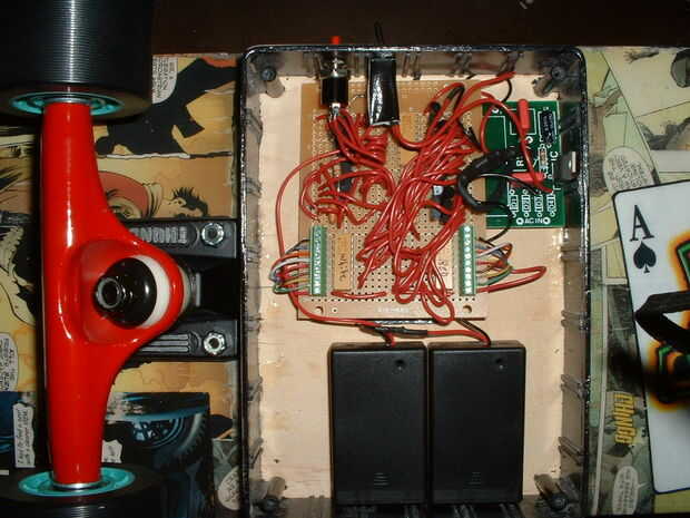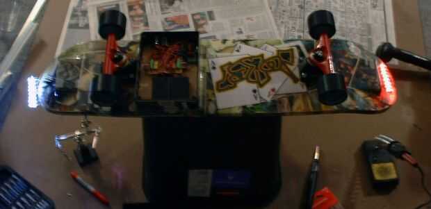 Adjunto está un breve vídeo de Josh (los 13 año de edad) en la Junta en la oscuridad. El video fue difícil filmar en la oscuridad con los LEDs brillantes, pero Josh dice que hacen mucho más fáciles de montar por la noche.