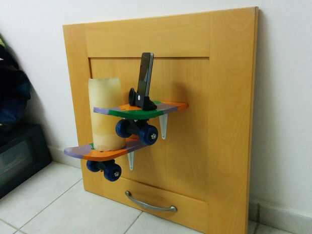 Tuve problemas fijar los estantes a la pared debido a mis paredes ser lo que son. Puede adjuntar sus estantes recto a pared Si quiere o atarlos a un trozo de madera (reciclé una antigua puerta gabinete) colgar en la pared con ganchos. Puede utilizar soportes de cable para sujetar un anillo de algún tipo en la parte superior de la pared posterior (mina había reciclada de una correa usada) y luego colgar todo en perchas de imagen (reforzada con un clavo extra debido al peso).