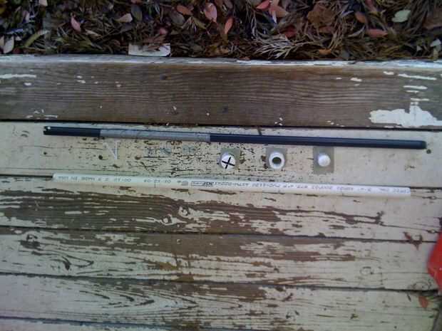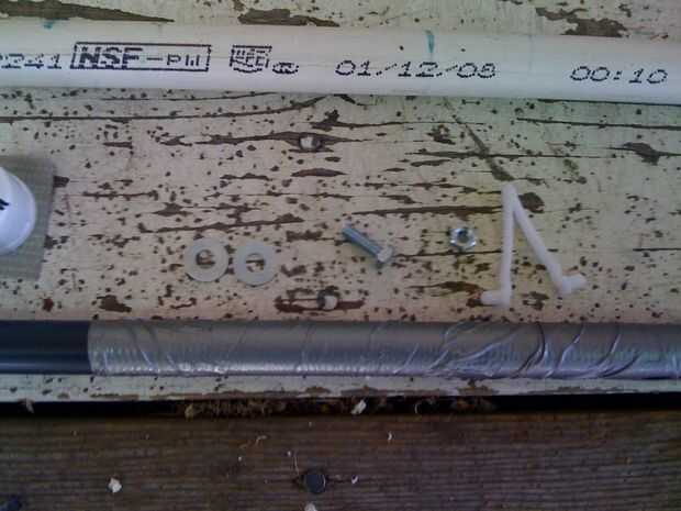 * 1-3/4" PVC tubo de aprox. 30" largo. Nota: horario 40 no funciona para esto. Necesita un diluyente - conocido como "cáscara de huevo". Es Horario 20, IIRC. Se necesita este porque el niple de tubería de riego gris se deslizará justo en su interior con sala pequeña ondulación.