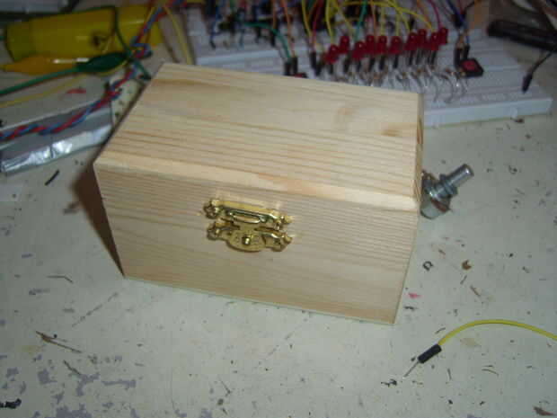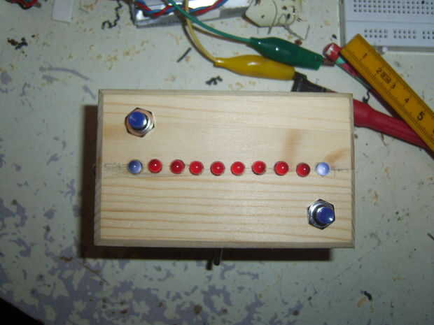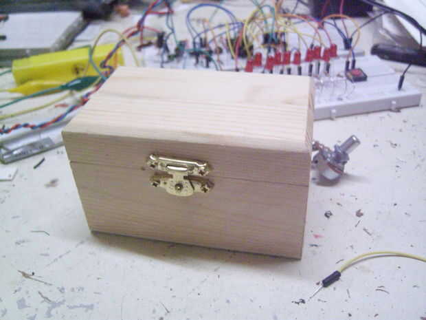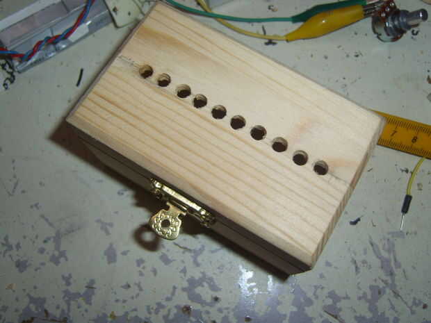 Empezamos con la parte más sencilla: taladrar los agujeros para los LEDs, pulsadores, potenciómetro y en-interruptor a la caja. Ya puede montar estas piezas. Quité las partes metálicas de la caja para tener un diseño más limpio.