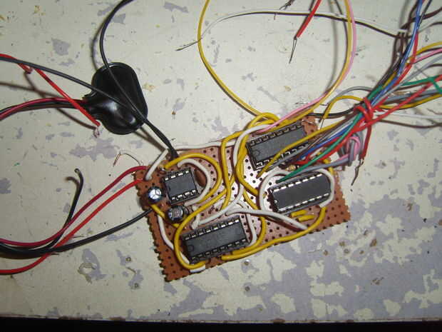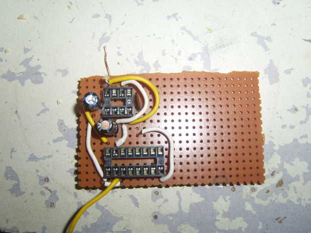 Comenzar con el circuito NE555 y Suelde todas las conexiones paso a paso. No te olvides de verificar dos veces todas las conexiones utilizando el multímetro para evitar errores. Podría ser difícil encontrar la conexión que falta/mal más adelante. Consulte el diagrama del circuito y trabajo esmerado. (haga clic aquí para una versión grande del diagrama)