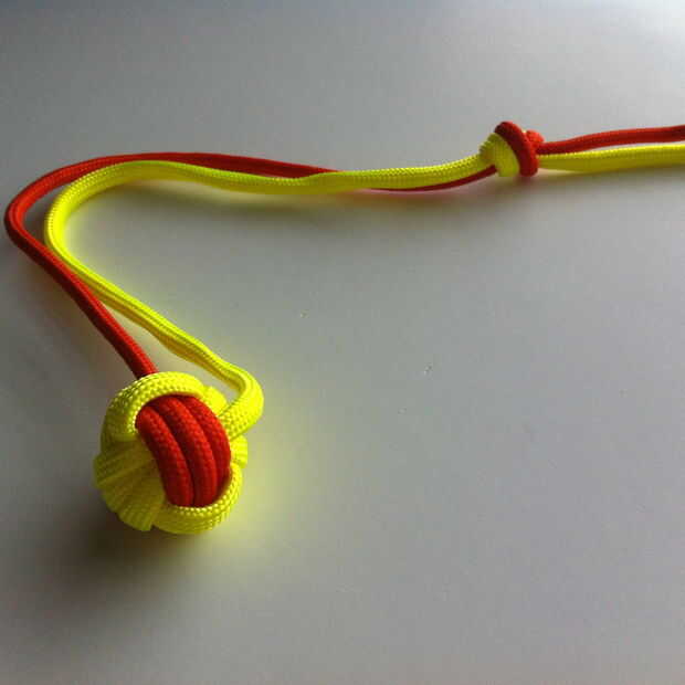 Cuidadosamente cortar extremos de puño de mono para un solo pedazo de la chamusquina y dejar una soga.