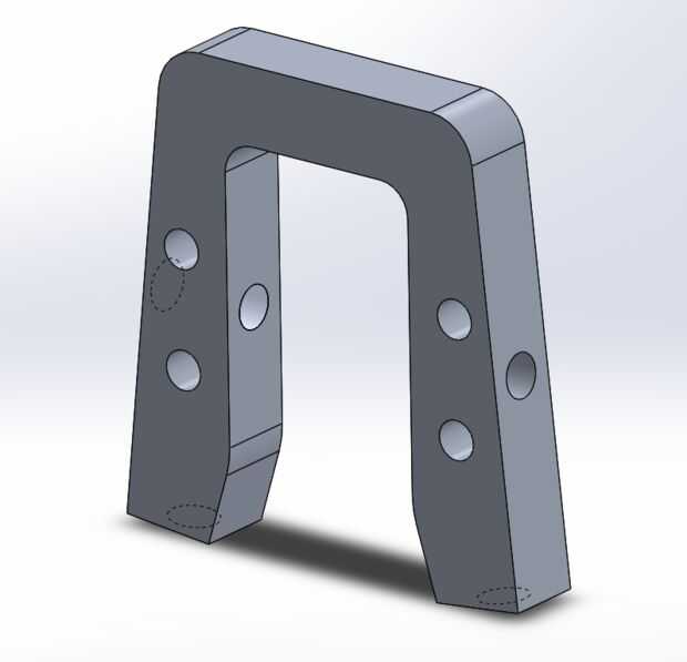 Los montajes del rodillo se utilizan para mantener el chasis centrado al interior de llanta y que le caigan. Su diseño es especial para la llanta de la rueda para que algunos ángulos y dimensiones pueden variar. El ángulo de la montura sigue una línea al centro de la rueda, para mantener mejor los rodillos laterales en línea. Después de agua que echa en chorro hacia fuera de la forma básica, perfore un orificio de 5/16" según sus planes para el árbol y perfore y aprovechar los agujeros de 5/16"-18 para el montaje de los rodillos laterales.