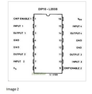 • Patillas 3, pin6, pin 11 y 14 son los pasadores que se utilizan para el funcionamiento de estos motores dan el poder para el motor giro pines 3 y 6 son para la alimentación y la tierra de un motor; los pines 11 y 14 se utilizan para la energía y tierra en el motor, no importa cómo está conectado esto y cambia las polaridades para girar hacia un lado o el otro motor.