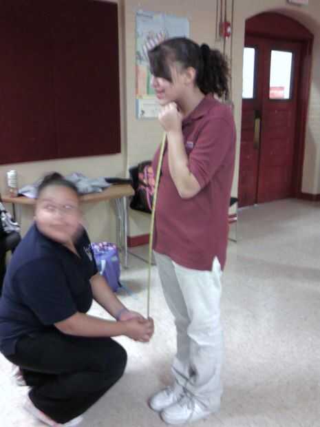 Medir la persona es, desde la base del cuello hasta la mitad de su muslo.