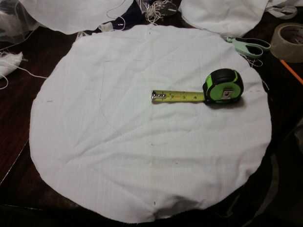 Si has seguido nuestra instructable exactamente su diámetro será 21 1/2" dividido esta medida por 2 para obtener 10 1/2"