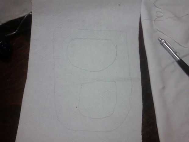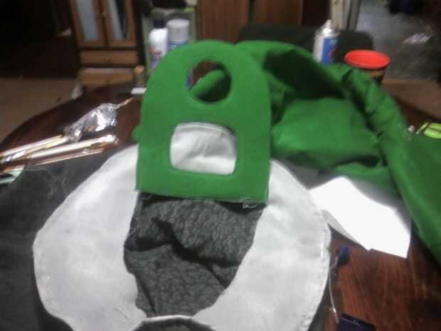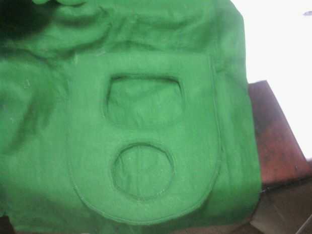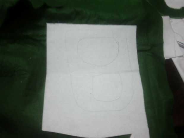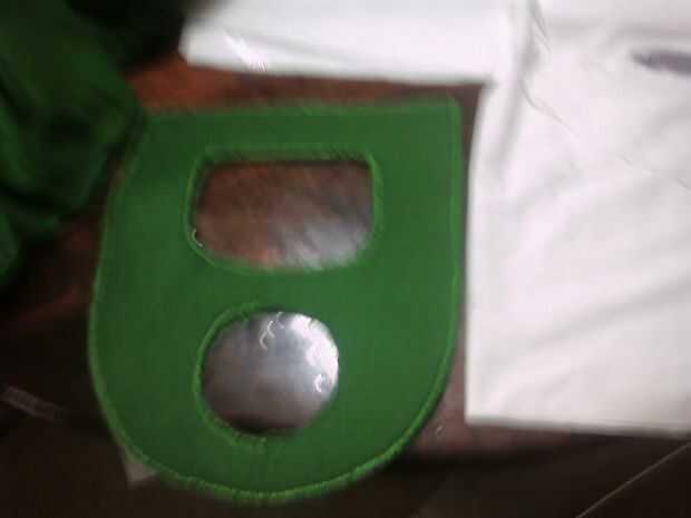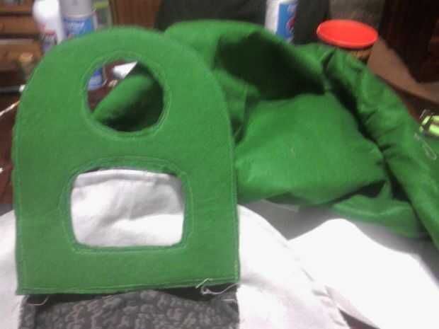 Coloque el corte hacia fuera la lengüeta hacia abajo en el resto del fieltro verde, entretela lateral pasador en lugar