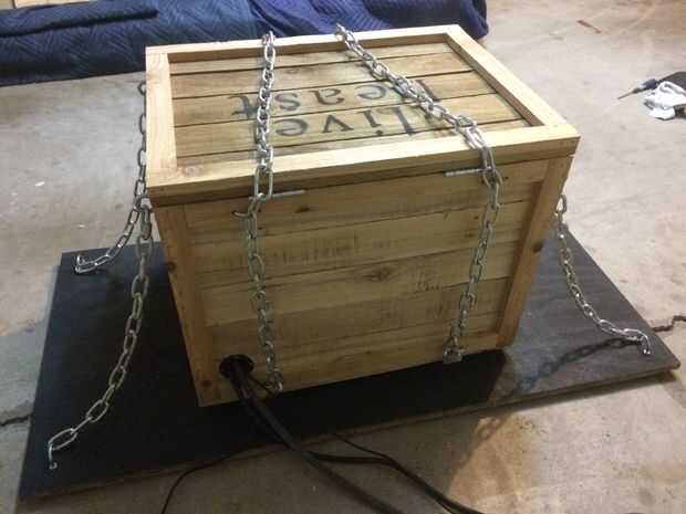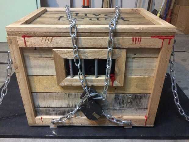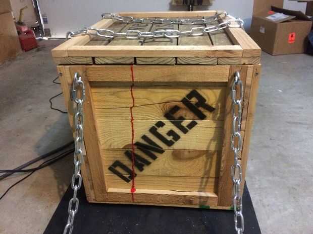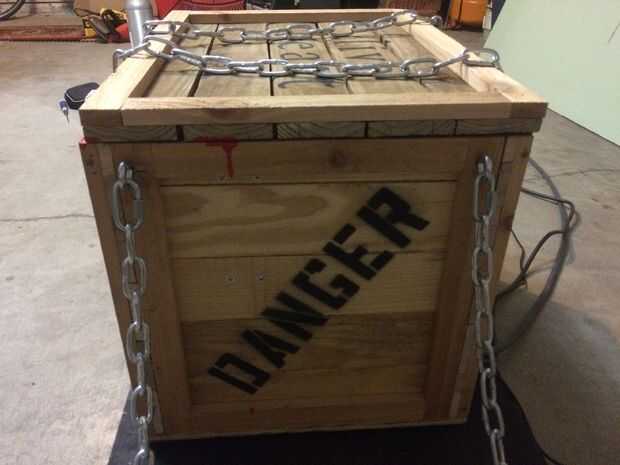 Pinté la base negra plana por lo que no destaca tanto. He añadido algo de sangre falsa alrededor de la tapa de apertura y por los lados. Encontré que la pintura puff rojo funciona muy bien para esto. He añadido algunas plantillas en los lados y arriba a acabar.